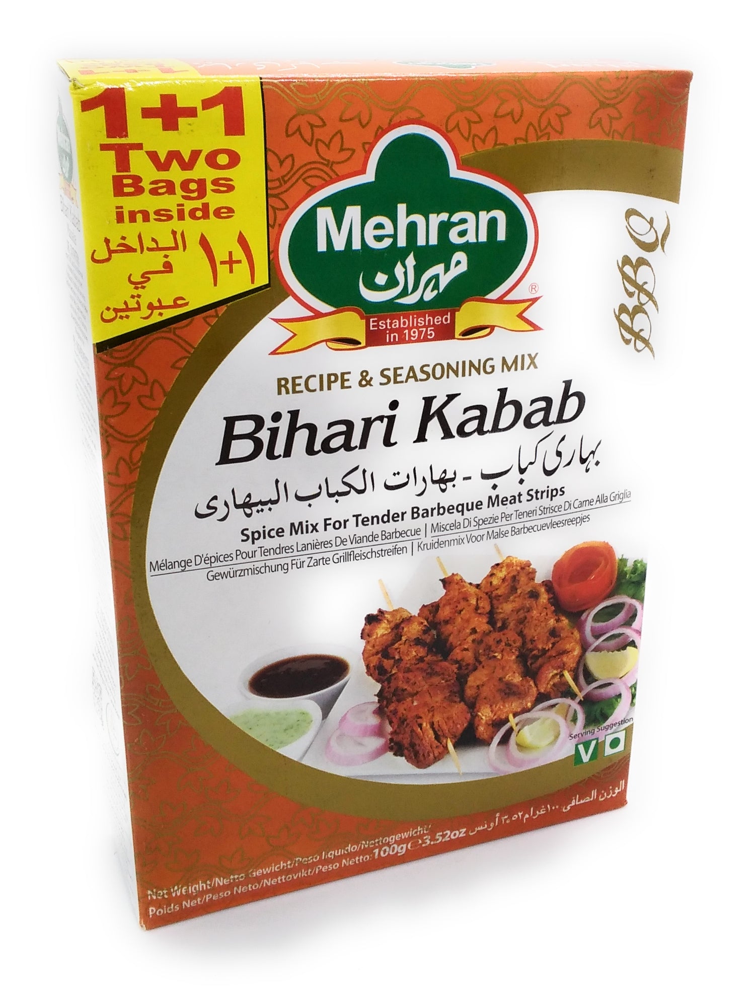 Das Mehran Bihari Kabab ist eine köstliche Mischung ausgewählter Gewürze und hochwertigem Fleisch, die in einer praktischen Verpackung von 100g geliefert wird.